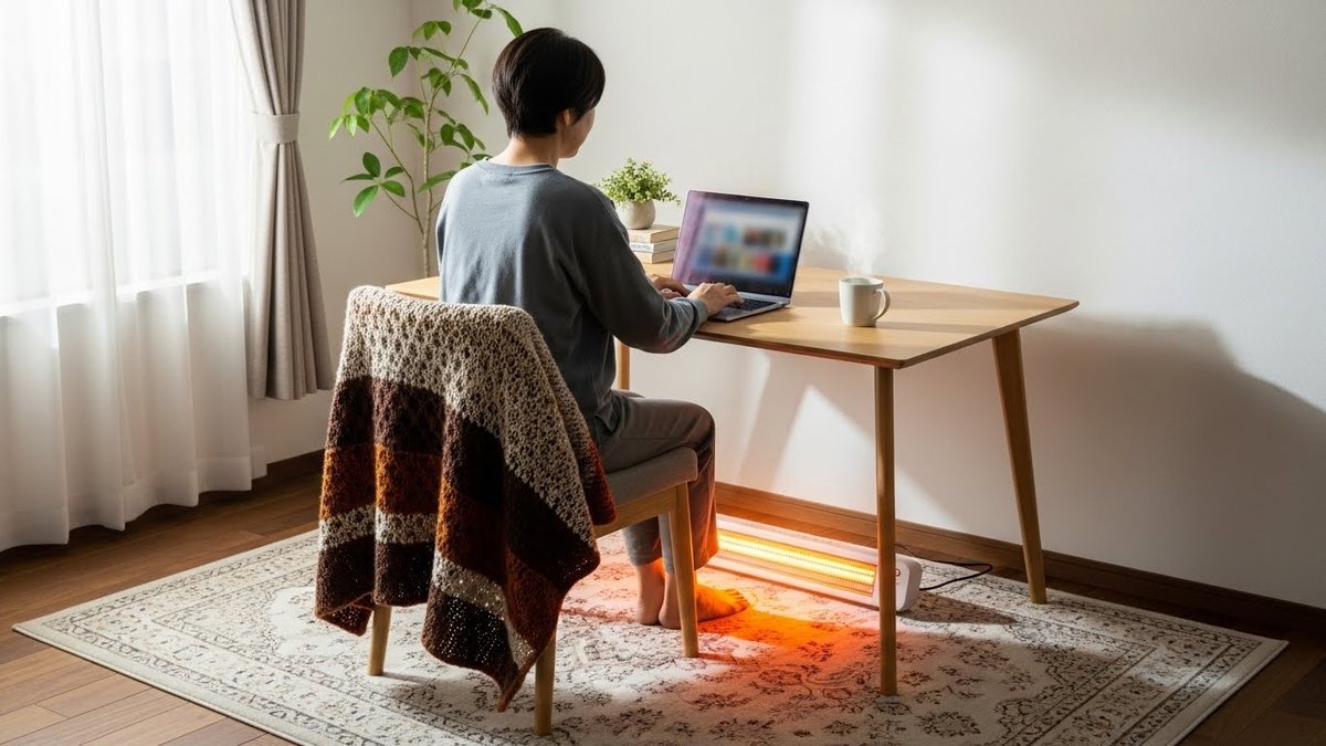 「輻射熱を逃がさない」工夫をすることで、ヒーターの満足度はさらに高まります。グラファイトヒーターで自分を温めつつ、ひざ掛けやブランケットを併用すれば、温まった熱が逃げにくくなり、低いワット数でも十分な暖かさをキープできます。特に足元が冷えやすいデスクワークなどでは、この組み合わせが最強の寒さ対策になります。
